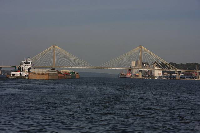 We went through Alton, IL and then the biggest lock on the Mississippi. St. Louis looks cool from the water, but they do not offer any dock or marina.