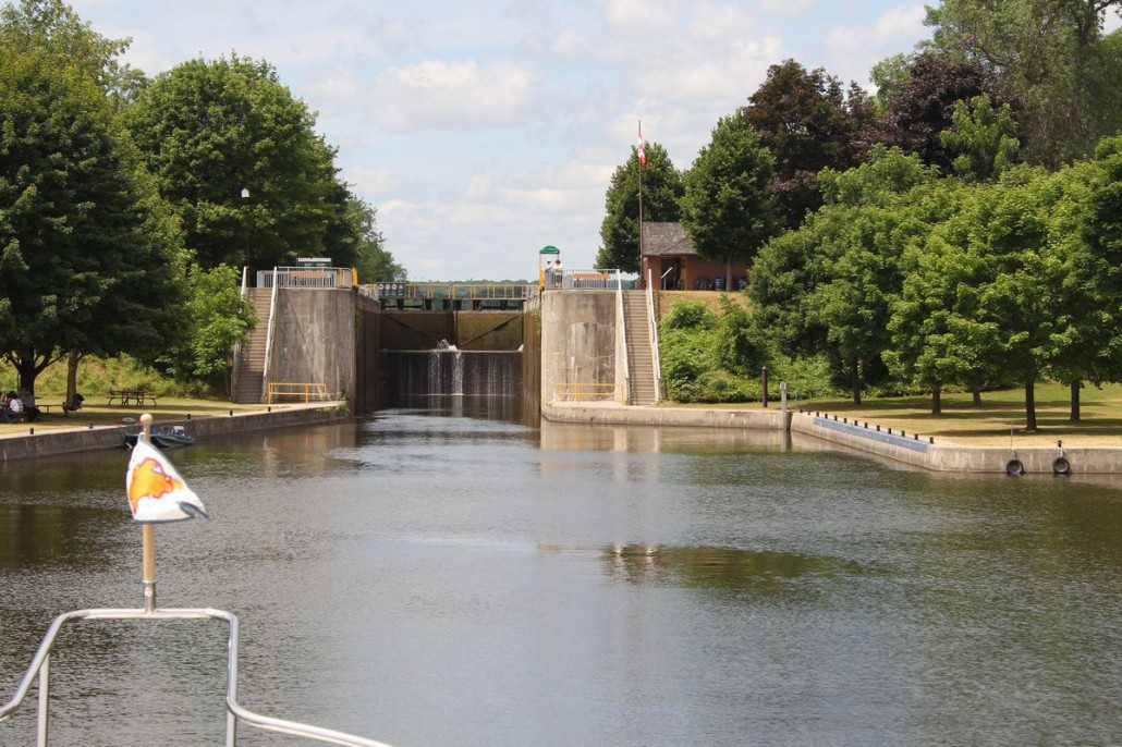 We head out early with our friends 20Buck$ and we started the Trent-Severn Canal. We went through 12 locks and were lifted more than 200 feet. We were the only two in the locks and have this down pretty well at this point. We stopped on the parks wall just before Cambellford.