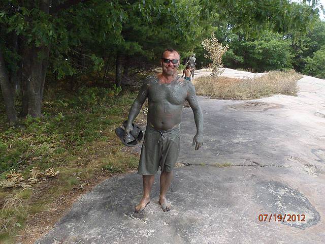 We waved goodbye to $20Bucks then set off to Kilcoursie Bay. We had read about a mile long beach and a good anchorage. It was a beautiful spot with a nice hiking trail. This is another Canadian Park which is very popular. We enjoyed a hiking path and meet a family that was there with three generation at campsites. The cousins were all enjoying a mud hole, even got one of the Dads in the game.