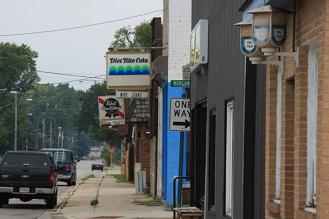 I set a course for Menominee, Mi. This town is on the west shore of Green Bay and on the State boarder with Wisconsin. We got out the bikes and rode across the small bridge into Wisconsin, got to love the old signs on the taverns. The cow art was in Michigan. We only intended to stay here for a day but the Marina was so nice and the dinner at Berg’s so good we stayed another day.