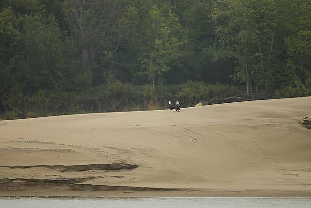 We asked him how deep the water was where he had stopped against the bank, he said 19 feet. I asked him if we would be out of his way if we anchored behind the wingdam in front of him, he said that would be a good spot for the night.