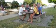 We grilled out and enjoyed dinner and the sunset with Ken and Pat. Pat closed the evening with her conch. A talent she picked up in the Florida Keys.