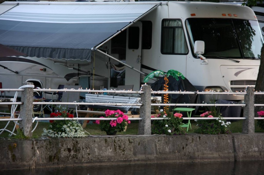 We went to Smith Falls and decided to stay through July 1st “Canada Day”. The last time we traveled on a Holiday weekend the boat traffic was pretty tough. We caught up on some maintenance items and provisioned at a Wal-Mart… it had been a while since we had seen one. On the 30th we got Chinese with Pat and Ken then went across the basin to Centennial Park, and enjoyed live music, “Night Train”. It was the first night of their summer weekend concerts. They played some great Oldies.. 60′s and 70′s.