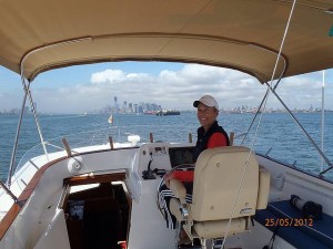 So we pulled anchor and followed “Patty Wagon”.The FOG had lifted some and we had about 3 miles visibility. On the way out of Sandy Hook we got delayed waiting for a coast guard boat was towing an small boat, as we got going a hydrofoil ferry broke through the FOG headed our way doing about 30 MPH. We got out of his way and refocused our attention to the radar and carefully made our way to NYC. After a couple of mile we finally saw the Verrazano-Narrows Bridge.